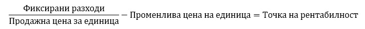 Точката на рентабилност е точката на продажба, която носи достатъчно приходи за заплащане на общите разходи за управление на предприятието; отвъд точката на рентабилност ще започнете да печелите. Основното изчисление за даден период ― се препоръчва най-малко 2 години ― е следното: