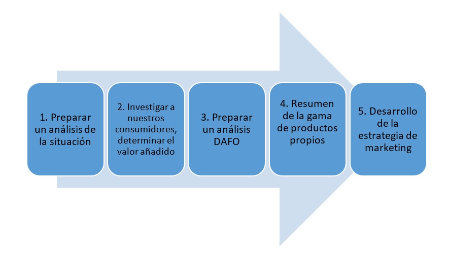 Como primer paso, se propone preparar un análisis de situación, basado en la información de un estudio de mercado previo. En el análisis de situación, determinaremos cómo se reciben nuestros productos/servicios en función de los comentarios recibidos, quién es nuestra base de clientes, cómo puede ampliarse, cuáles son nuestros principales canales de venta y cuál su eficacia en este momento.