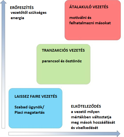 Az ábra a vezetési stílusokat összegzi a vezetői “erőfeszítés” és annak eredménye kontextusában.