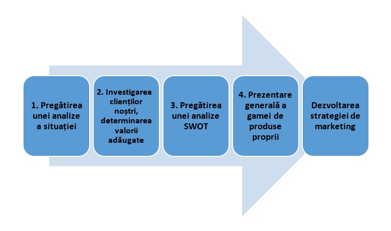 Ca prim pas, se propune elaborarea unei analize de situație, pe baza informațiilor din studiile anterioare de piață. În analiza situației, vom determina modul în care produsele/ serviciile noastre sunt primite pe baza feedback-ului, cine este baza noastră de clienți, cum poate fi extinsă, care sunt principalele noastre canale de vânzare, cât de eficiente sunt acestea în acest moment.