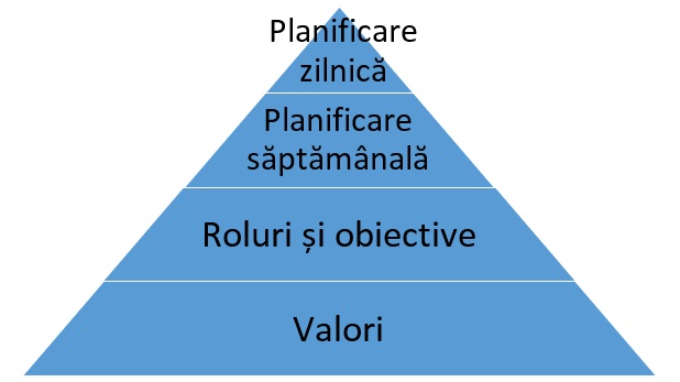 Ne putem dezvolta propriul sistem de planificare eficientă în viața noastră de zi cu zi, în care ne terminăm munca zilnică la o oră prestabilită și ne concentrăm pe activități de petrecere a timpului liber, familie și prieteni. Stabiliți-vă o țintă, de ex. puteți termina munca până la ora 17:00 și puteți fi mulțumit de performanța dvs. pentru ziua respectivă. Este important să putem face acest lucru fără a simți o presiune constantă a timpului în timpul zilei.